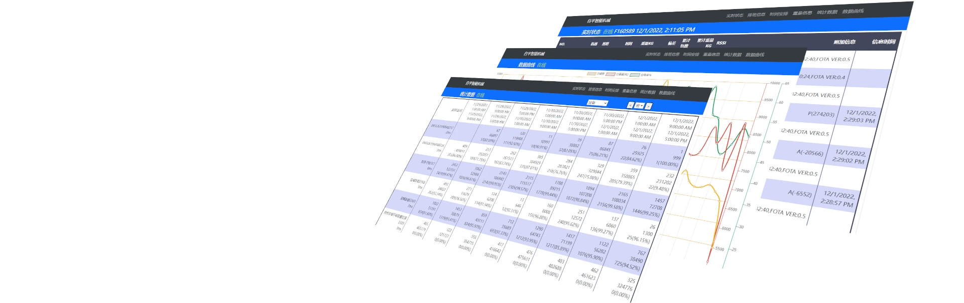This software is mainly used in the field of factory production. It is used to count the production quantity, weight and error analysis of automatic packaging machines, and to count the current day, current month and current year's output in real time.